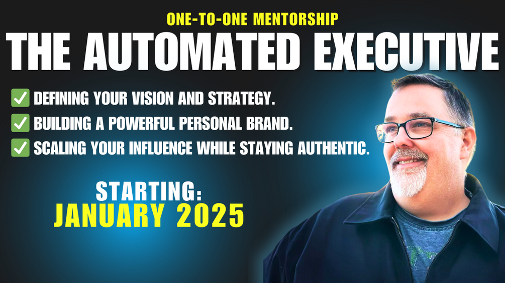 Are you ready to transform your leadership and leave a lasting impact? Drawing from over 30 years of experience at Amazon and Microsoft, I’m here to help you: Define your vision and strategy. Build a compelling personal brand. Scale your influence while staying authentic. In this 3-month mentoring program, you’ll receive a tailored roadmap, hands-on branding help, and real-time support to achieve your goals. Join The Automated Executive today, and let’s redefine what leadership means for you. [Get Started Now]